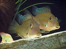 This species is beginning to become more common in the aquarium trade here in Australia. Young fish lack the face spotting and have the dark parallel bands that run from the corner of the mouth to the eye, so can be confused with true S. jurupari. There are efforts from a few people around the country to produce some numbers of quality fish so they don't disappear from the hobby. Some specimens can have bad / crooked mouths and poor body shapes (short and compressed), as well as deformed caudal fins, particularly along the base. Care should be taken when breeding and purchasing this species.