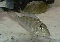 Silvery body colour, spotted face pattern, typical Satanoperca body shape.